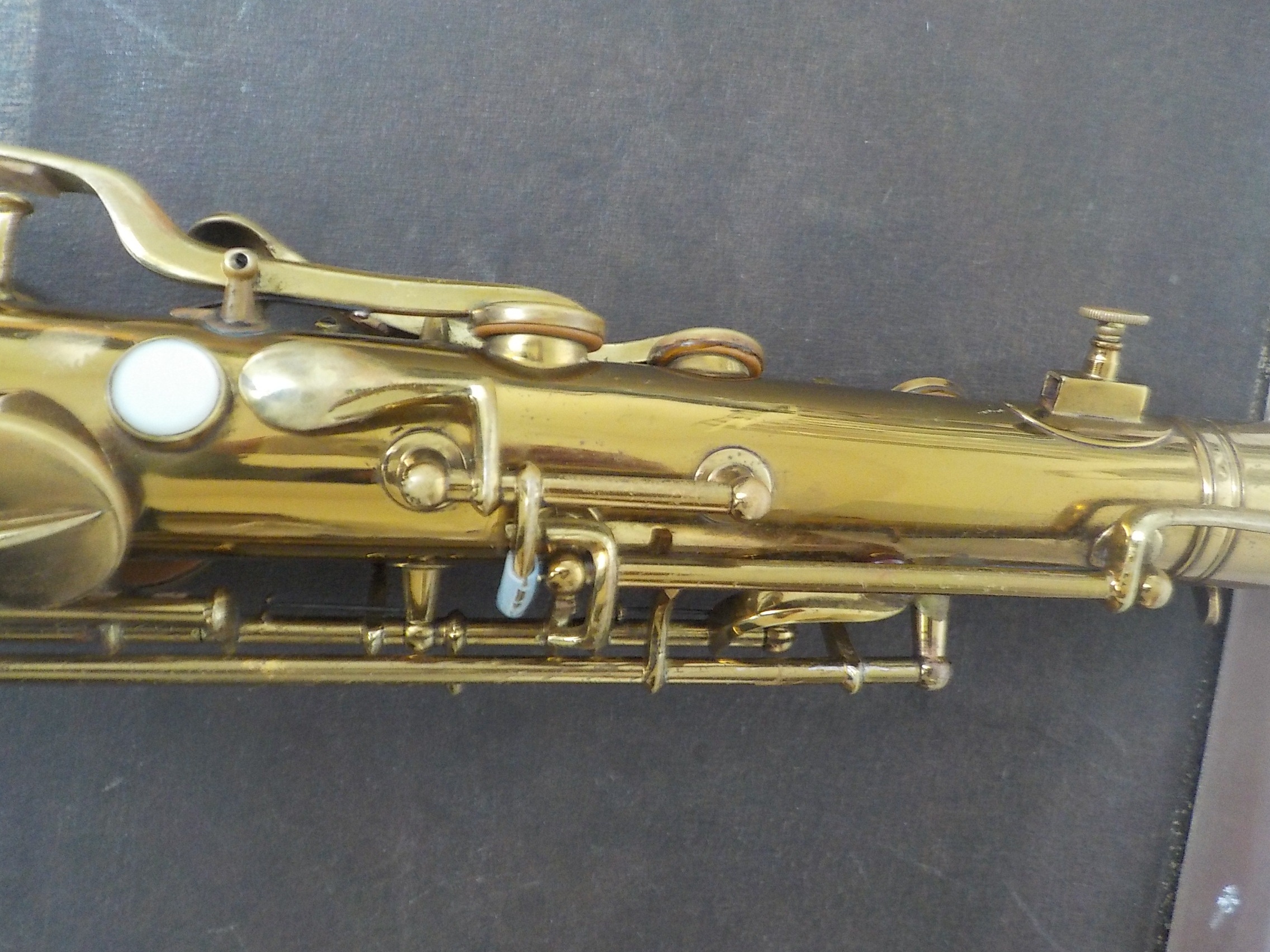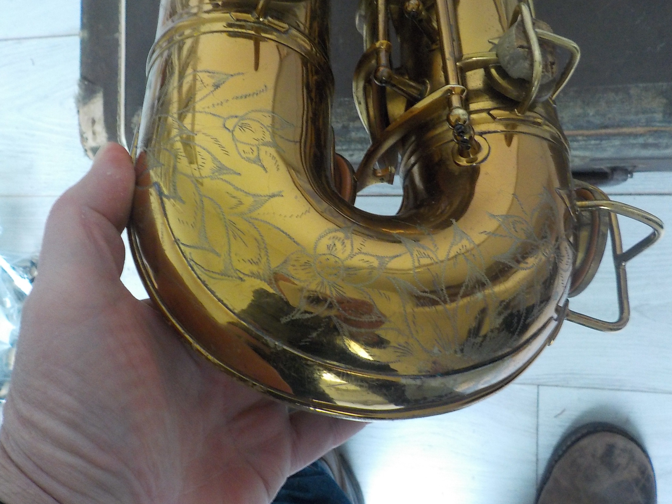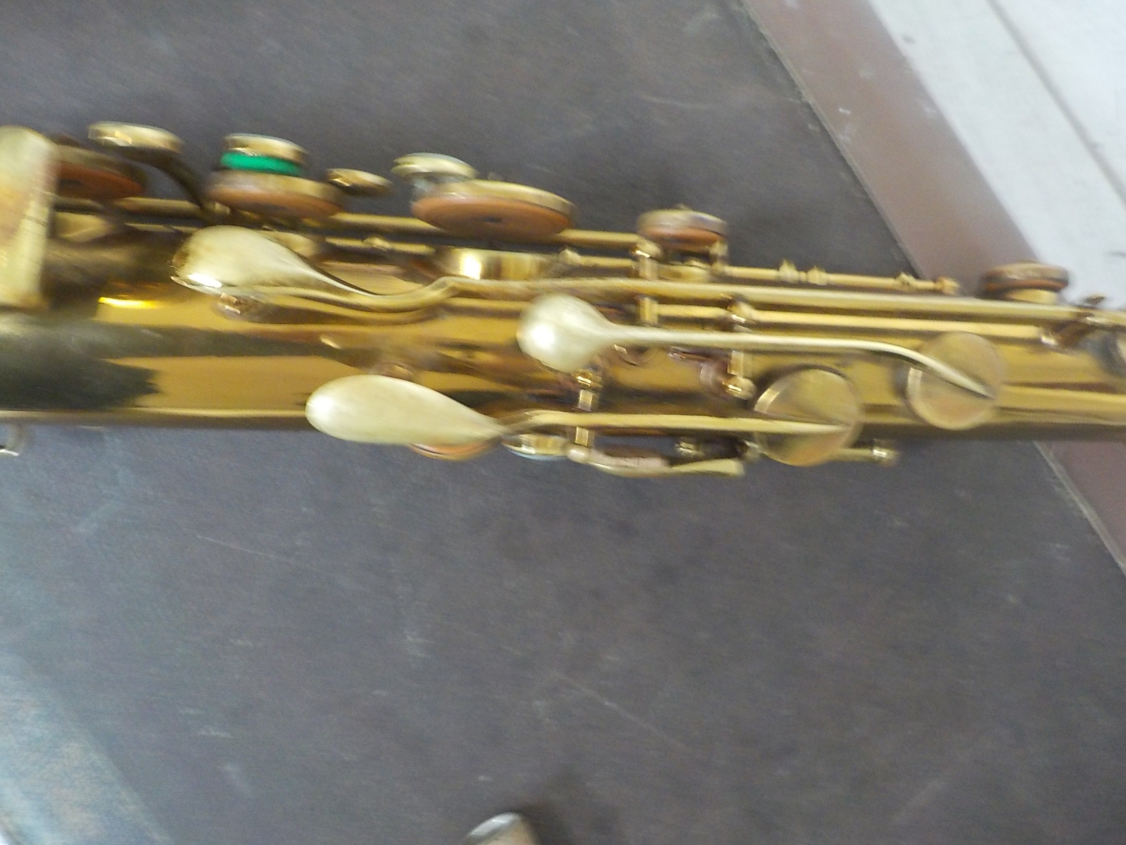 saxophone ténor pan american fabriqué par conn dans les années 30 aux usa.les tampons ne sont pas neufs mais en bon état.beau vernirs noir-doré.règlé,fonctionne bien.vieil étui solide